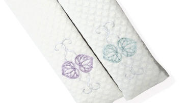 淡く優しい色糸で扇面とお揃いの葵柄の刺繍を施しました。